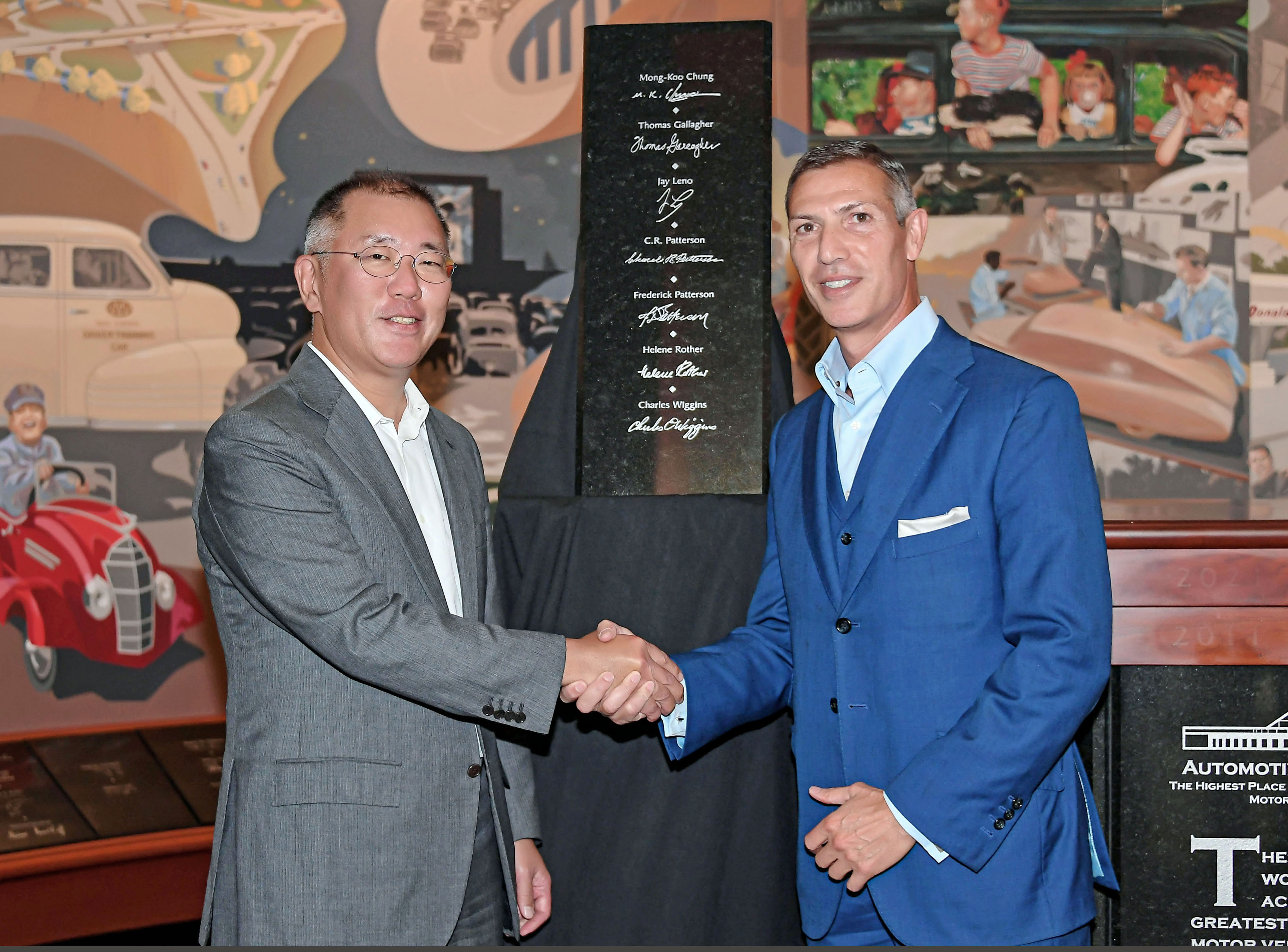 The day before the induction ceremony, an engraving of Chairman Chung’s signature was placed on permanent display at the Automotive Hall of Fame along with the signatures of the other inductees.